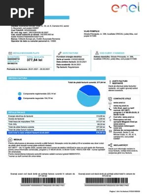Am grupat informațiile în funcție de importanța lor pentru tine și am adăugat un grafic prin care poți înțelege mai ușor componentele facturii pentru a ști . Nu gasesti codul eneltel sau codul client de pe factura enel? Ele vin in urmatoarea ordine. Cod client cod furnizor id factura nr contract cod enel tel cititi cu atentie prima pagina. ➡️dacă ești client pe piața liberă ( . Scanați acest cod dacă doriți să achitaţi factura curentă în valoare de.